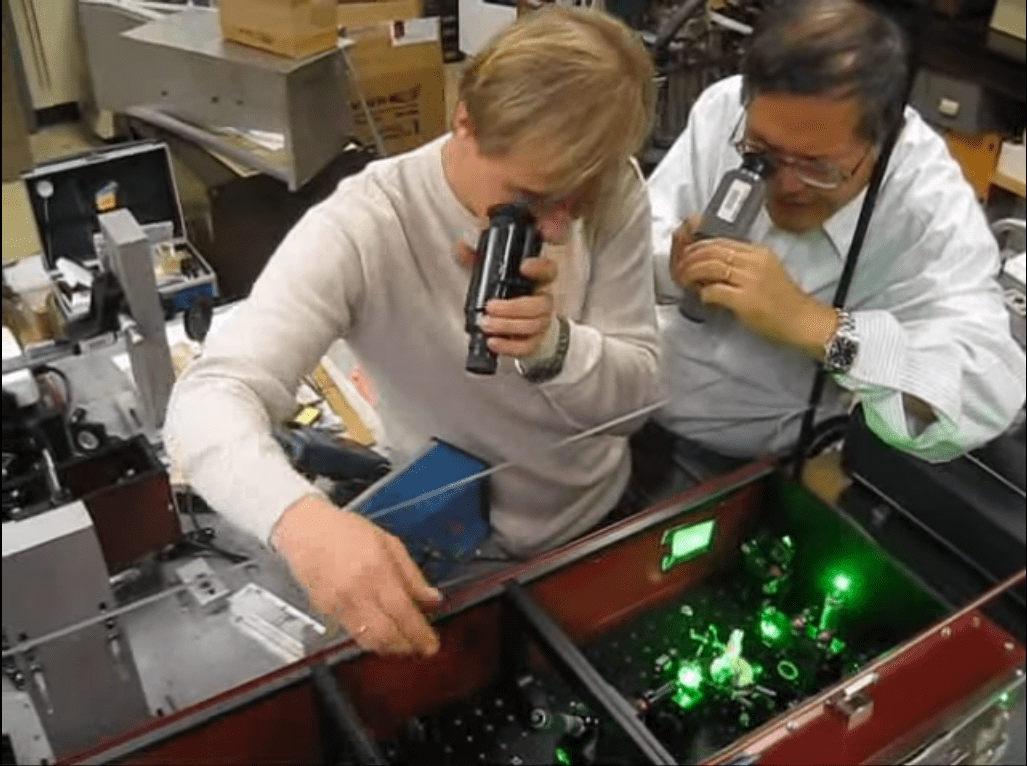 美國亞利桑納州立大學物理系鄭功榮教授與他生醫背景的兒子鄭紹偉博士,在 2006 年左右開始研究如何用超快雷射讓病毒失去活性。他們首先找上會感染細菌的嗜菌體 M13,並研究 M13 在超快雷射不同功率照射下,如何失去活性甚至解體。