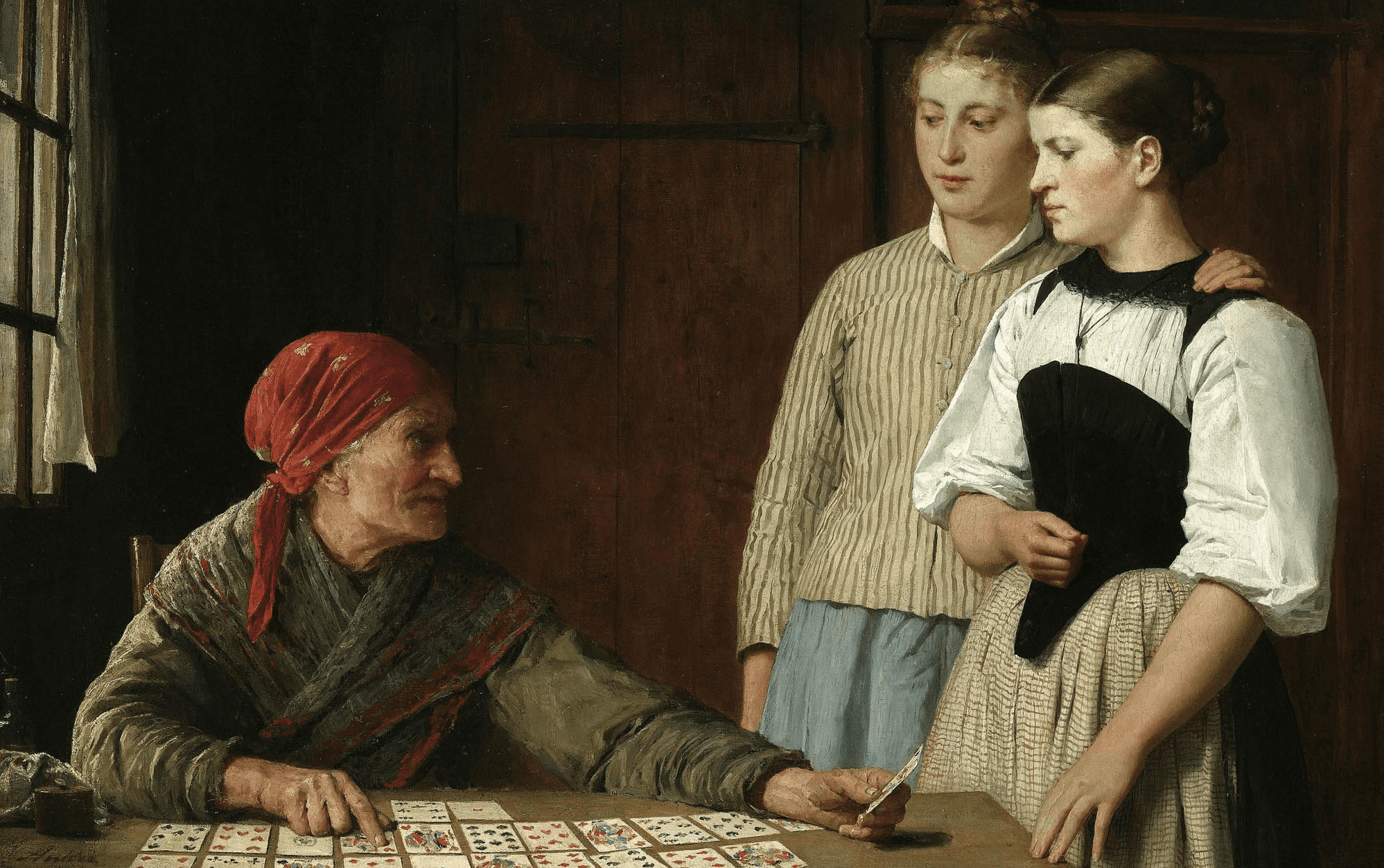 只要用一些小技巧,算命師就能讓你以為他無所不知。圖/By Albert Anker, Public Domain,Wikimedia Commons