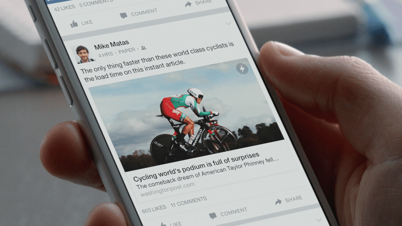 近年來,臉書成為讀者看新聞的主要管道。媒體在臉書上分享文章鏈結,從臉書上引導流量回到自己的新聞網站。尤其是當自己網站上流量不多的時候,小編們就趕快在粉絲專頁上分享文章,很快就可以把臉書上的流量導回自家網站。臉書也非省油的燈,不願媒體把自己的用戶導離開臉書,仗勢自己廣大的用戶群,推出即時文章(instant article),與之合作的媒體,把內容免費提供在臉書上以換取跟臉書的廣告拆帳與珍貴的用戶資料(透過臉書上的用戶資料,就能夠更精準地賣廣告),如此,臉書用戶看新聞,不需再離開臉書,而臉書擁有這些免費內容,不但吸引更多用戶,也把每個用戶成功地留在自己的平台上。