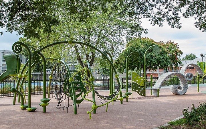 現在我們再繼續聊聊這個主題:美國首都華盛頓特區有一個遊樂場叫做 Harry Thomas Sr. playground,由 Landscape Structures 公司設計,它被選為世界上最酷的十六座遊樂場之一,因為這是一個被數學啟發(math-inspired)的遊樂場!