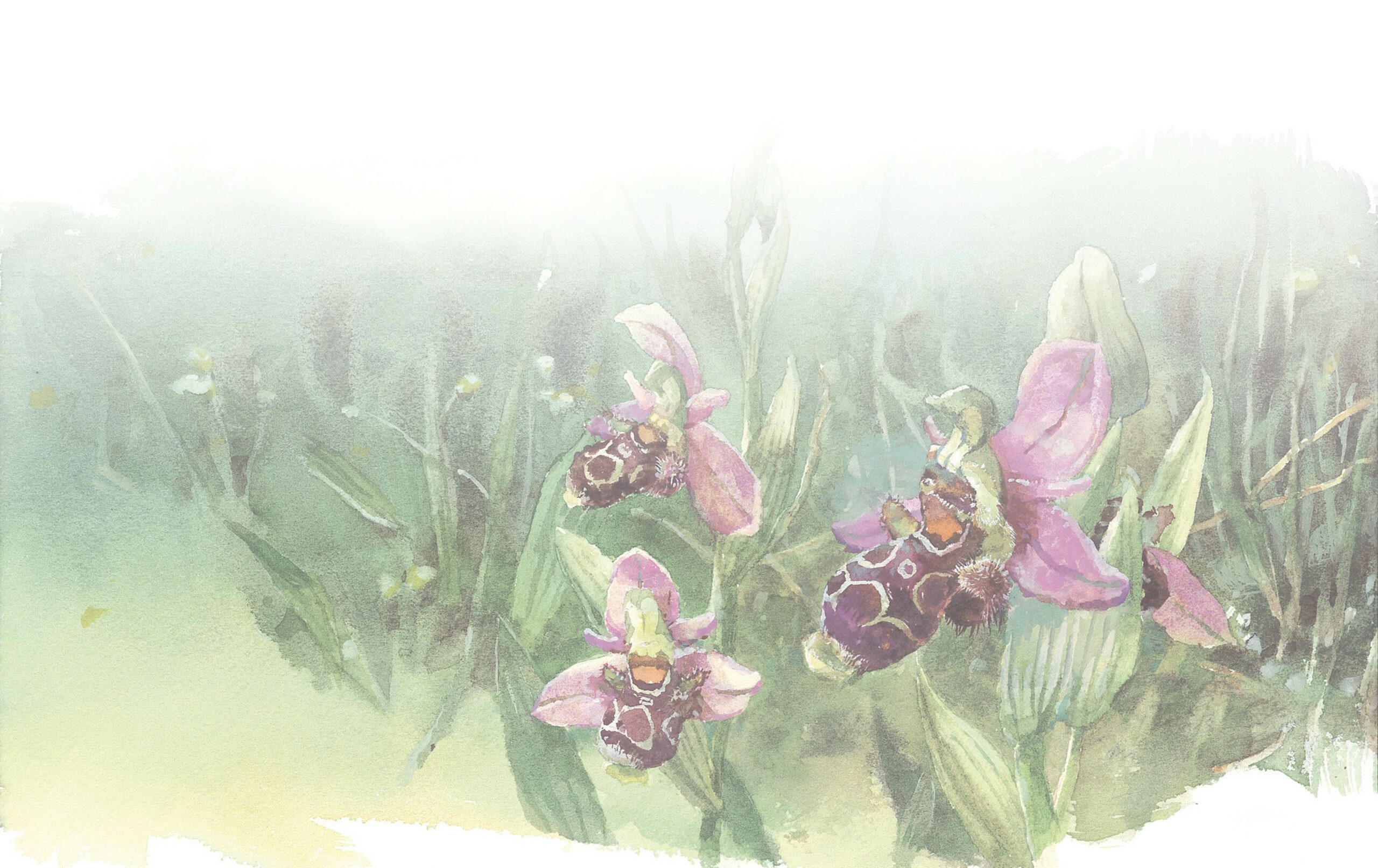 分布於南歐、北非、中東的蜂蘭屬(Ophrys)植物,生長於乾草原上,拇指般大的花朵小巧精緻,仔細觀察,唇瓣的形狀像極了雌地花蜂的腹部。不僅是外型相似,連唇瓣上的特殊斑塊與顏色線條,甚至是上頭密生的絨毛都模擬得維妙維肖。