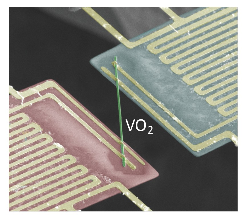 二氧化釩是一個具有「金屬-絕緣體相變(Metal-insulator transition)」的材料。於溫度 68°C 以上的環境,二氧化釩會具有金屬特性,若位於 68°C 以下環境,則會具有絕緣體特性。柏克萊團隊為了證實中的自由載子在輸運電荷的過程中並不肩負熱的傳輸,他們利用懸空的單晶奈米線結構,保證熱流與電流傳導為同一方向,也去除材料中應力與多晶格方向的影響。