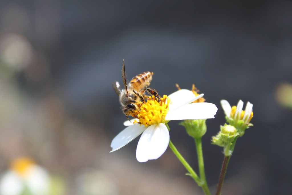 蜜蜂在大花咸豐草採蜜,除了蜂農樂見,大花咸豐草也獲得雜交保存優良基因的機會。圖/sclereid0309