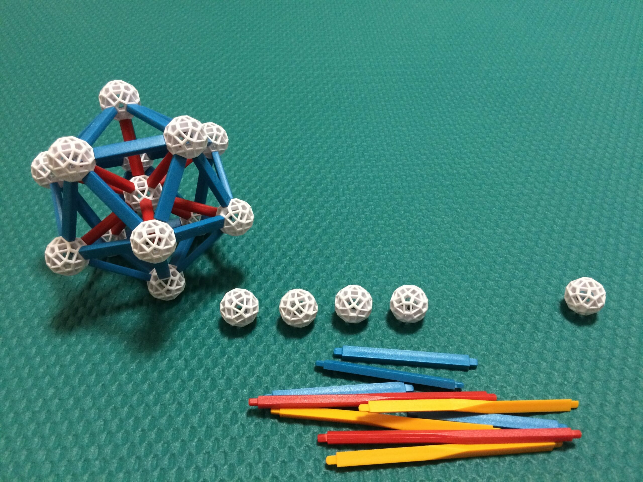 不過,三維的情況就沒有那麼容易想像。數學家已經證明三維空間最多就是 6 條,它們是正二十面體的十二個頂點所構成的 6 條對角線。這 6 條對角線恰巧形成等角直線叢,夾角是 arccos (1/√5),大約是 63 度左右,請見下方影片。