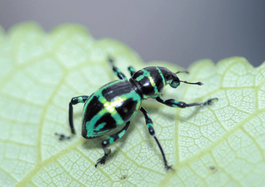 球背象鼻蟲(Pachyrrhynchids)是一群擁有堅硬翅鞘和美麗斑紋的迷人甲蟲,因為翅膀退化且翅鞘癒合,因此無法飛行。主要分佈於馬來群島如菲律賓、印尼蘇拉威西島、新幾內亞等島嶼。由於擁有華麗的斑紋,是昆蟲標本收藏家們喜愛的收集對象之一,而其斑紋被認為是一種警戒色,以警告掠食者牠不好吃,以降低被捕食率。Tseng et al. (2014)1的研究也以實驗數據驗證了這點。