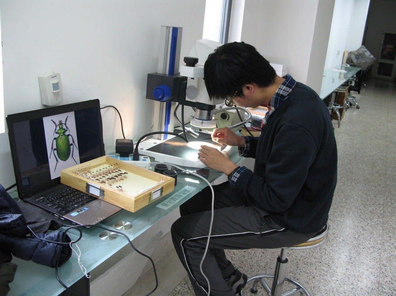 一直到我大四去廣州中山大學交換,偶然的機會下,我有幸得以借閱法國巴黎自然史博物館的藏品,並順利找到黑足櫛角菊虎和紅胸櫛角菊虎的模式標本,不過,這幾種櫛角菊虎都是以雌蟲作為模式標本發表。