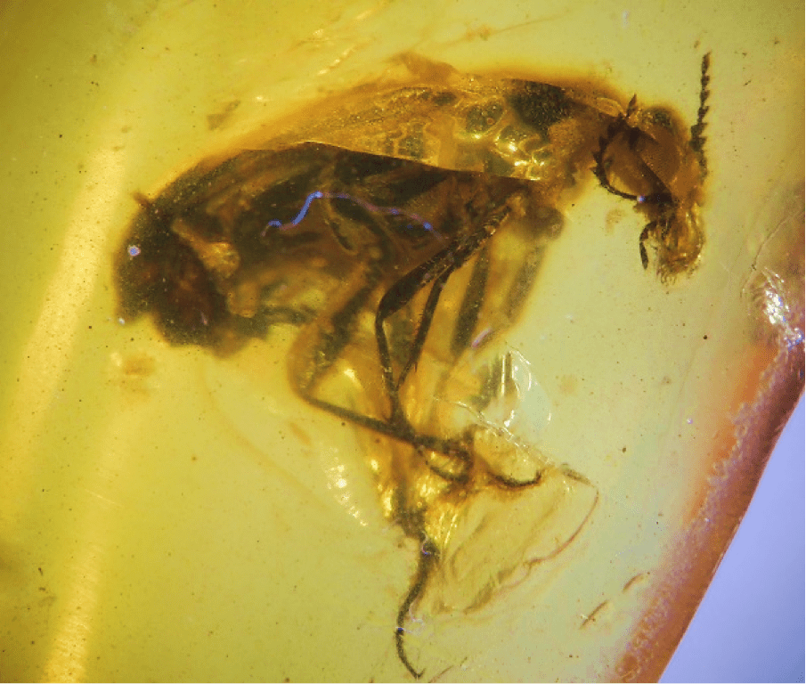 琥珀是由古代植物分泌的樹脂經長期掩埋而最終形成的珍貴半寶石,琥珀生物化石則是在形成琥珀的樹脂在流出時「活埋」了週遭環境中的生物,是意外失足的心酸古墓,也是探索古生物的珍貴寶庫。來自緬甸克欽邦出產的琥珀年代約為 9900 萬年前 (晚白堊世、森諾曼期),保存大量完好的古代生物遺骸,為近年古生物學者所專注的其中的焦點之一。
