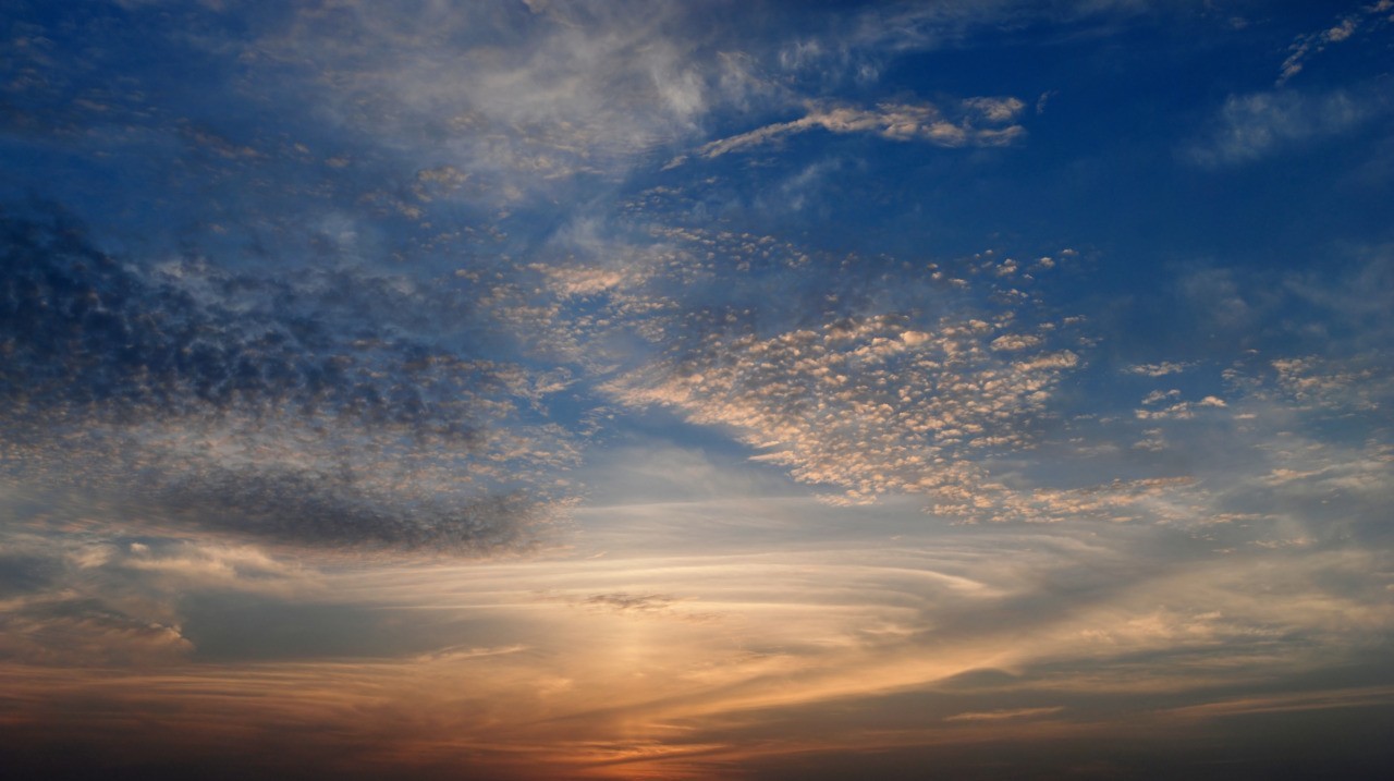 清晨或黃昏時,陽光在大氣中得經過更長的路徑才到達我們眼睛,有更多藍光在中途被散射了,所以朝日與夕陽看起來都是橙紅色的。彩霞就是雲反射陽光,所以也是橙紅色。天空不再是白天的藍色,是因為光線變弱了,而呈暗黑色。