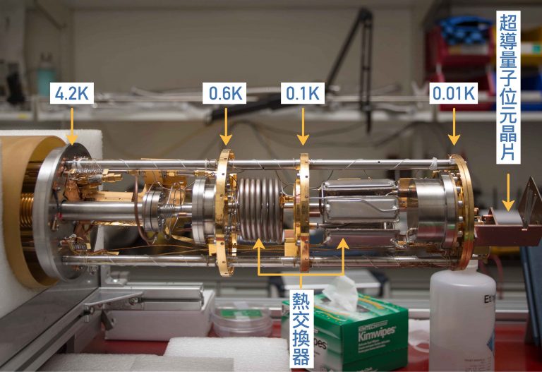 量子電子位元晶片上的「人工原子」能階間距,以溫度衡量大約僅是 0.4 度,為了避免熱激發影響實驗,量測量子位元的操作溫度,需遠低於 0.4K(也就是 -272.76°C) ,趨近於宇宙中的最低溫──絕對零度 0 K(或 -273.16°C)。