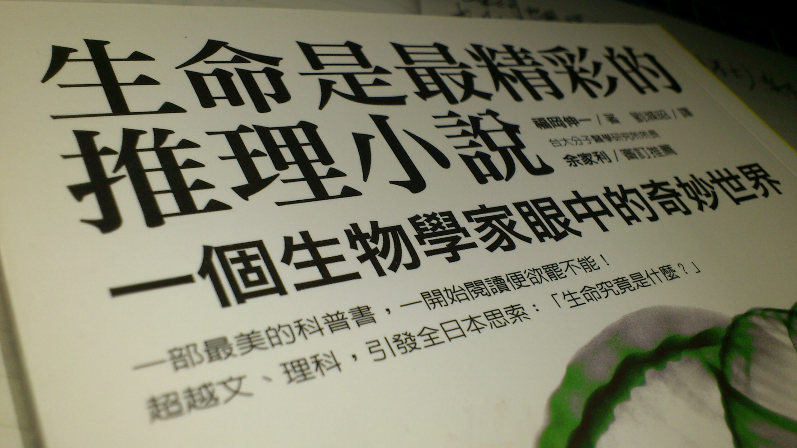 主題是分子生物學,不過內容充滿人文情懷、少有冰冷的科學敘述。全書除了用十分淺顯直白的方式介紹分子生物學領域的重要歷史進程、知識內涵、以及名人軼事之外,也以研究人員的生態為敘事脈絡,寫了許許多多研究人員(當然包括作者自己)本身的故事而不是只側重在研究的發現上。就這一點來說跟我曾經介紹過的另一本談理論物理的《比光速還快》十分類似,不過後者行文較為辛辣,對學術界的負面事物有比較無情的表述;相較之下福岡伸一雖然在《生命是最輕彩的推理小說》中也提及不少學術圈子裡令人沮喪的面向,但文風比較清淡、開懷。