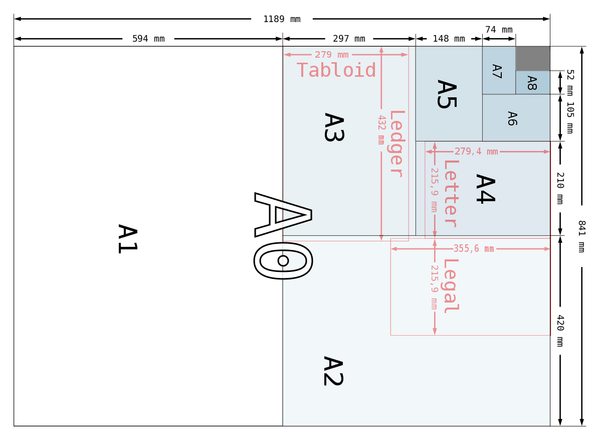 所有尺寸的紙張,長寬比都是一樣的,也就是: