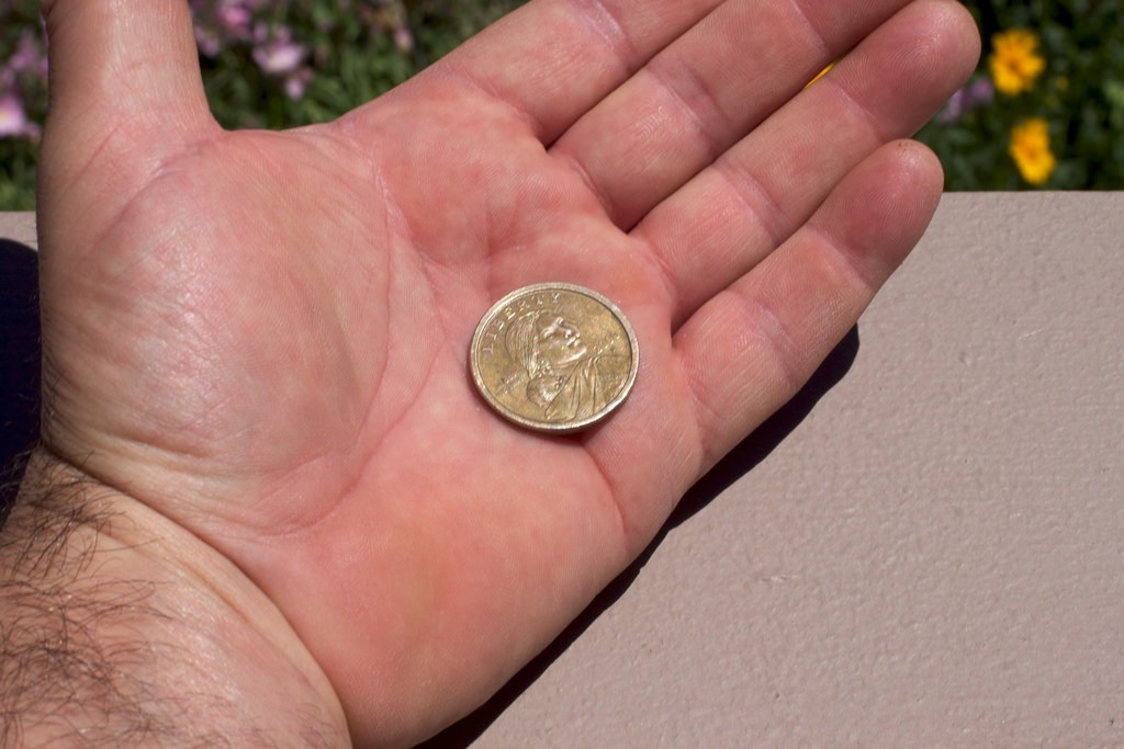 The smiling hippy chick behind the counter at the restaurant on Nelson handed me my change. "Oh look, you get a lucky dollar coin." Sure, I am in Canada, and people have that "nice" thing goimg. And their money is close to ours, except for more use of dollar and two dollar coins. The light was low, or I was dim, and I glanced at it, not exactly getting why the coin was special-- I still am not always sure which one is the single dollar. It was not until back at the table when I showed it to by Canadian friends and shrunk at their laughter-- Hippy CHick had passed me a US dollar coin (worth less than a Canadian equivalent). What a rube am I. Just write "sucker" on a sticker and slap it on my back. Maybe. I've had that dollar in my wallet for a week-- and all kinds of good things have been coming my way. So this is me smiling back at you, Hippy Chick-- you got a laugh, but I have some strong Mojo luck going here.