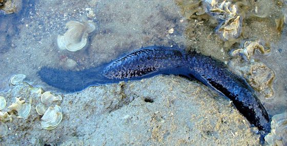 真是奇怪,明明牠就不是蚯蚓,為什麼遊客還一直找盡各種理由自圓其說地說服自己和別人呢?顯然人眼睛所看到的事物往往就是自己心裡所想要的,可牠明明就是一隻蕩皮參,是有著修長圓潤的身型,身體也可以伸縮自如,而且牠的確好像在抓泥巴吃,還一口接一口吃得津津有味;乍看之下牠還真有點像蚯蚓,連吃泥巴這件事也像;事實上蕩皮參與蚯蚓一點親緣關係都沒有,蚯蚓屬於環節動物,而蕩皮參則歸屬於棘皮動物,是海參的一種,與海星、海膽與陽燧足等有著密切的親緣關係,常可在恆春半島的岩礁潮間潮池中看到牠的身影,常與一群長相奇怪的表兄弟姊妹們如棘幅缸參,一起生活,大部分的時間都像挖土機一樣地在挖沙吃土,大量地過濾泥沙中味道鮮美的有機顆粒,隨著牠大口大口的吃沙挖土,許多雜石碎粒也被囫圇吞棗地嚥下肚去,再經過長長的腸道,有機碎屑被篩選了下來成為養份,而砂石則被混合壓縮成長條圓柱,經過缸門肌肉的一壓一縮,變成大小不一的橢圓形的糞粒丸留在沙灘上。