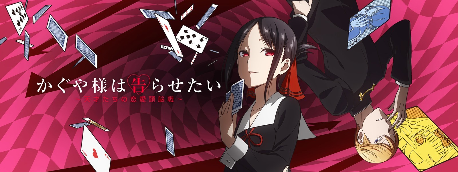2019年1月新番《輝夜姬想讓人告白~天才們的戀愛頭腦戰~》由同名漫畫改編,講述在菁英名門盡出的秀知院學院(日本的名門學校是不是比普通高中多?)中仍位處頂點的學生會會長白銀御行和副會長大大大小姐四宮輝夜,因為彼此不坦率的想讓對方先對自己告白,於是邊浪費才能邊傲嬌邊做死自己,而讓讀者邊愉悅邊被餵狗糧還直說「好吃再來一碗吧」的故事。