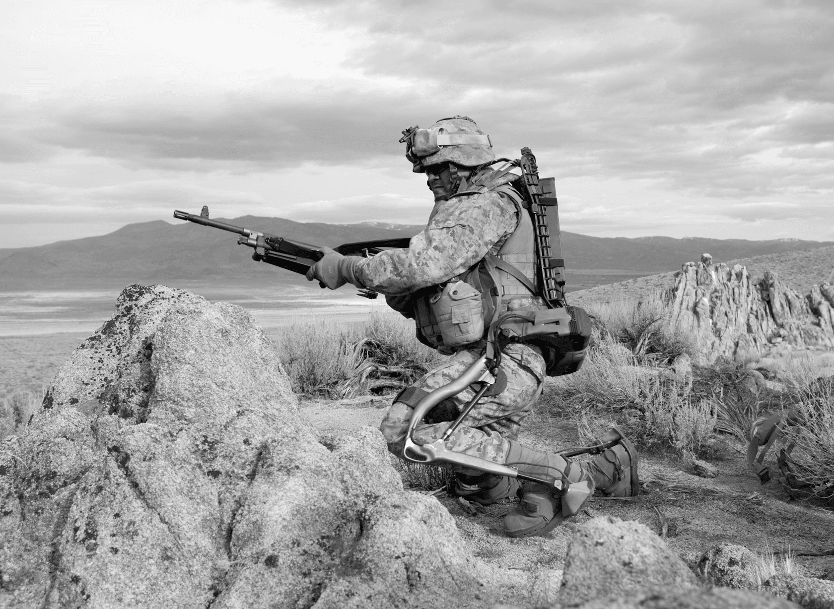 全球軍火製造業龍頭——美國洛克希德.馬丁公司(Lockheed Martin),與加州大學柏克萊分校合作研發出的人類負重外骨骼系統「浩克」(HULC),是目前第三代的動力「外骨骼」系統。它不但可以降低行走時的耗氧量達15%,同時也可以提供像盔甲般的保護。浩克的誕生是為了幫助士兵在戰場上能夠長時間身負重達200磅(相當於91公斤)的重物卻不會有沈重感,且同時能夠保持時速10英里(相當於16公里)的行進速度。