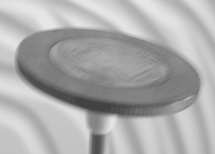 3.本表演所運用的科學原理,乃牛頓第一及第二運動定律。當硬幣在衣架上旋轉數十圈而不墜的科學原理為牛頓第二運動定律,此時表演者的施力要一致且旋轉速度不可忽快忽慢,不然硬幣會有偏力產生,而造成沿旋轉運動的切線方向飛出以致表演失敗;另一個表演關鍵為將硬幣旋轉後停止,表演者要能事先覺知到牛頓第一運動定律的慣性作用,在欲停止時,能預先做出抵制與緩衝的動作,如此將可完美的呈現此一科學魔法術。本魔法術還有進階的表現方法,為將數枚硬幣堆疊其上並旋轉不墜,本人曾嘗試成功以三枚20 元硬幣完成此魔法術。