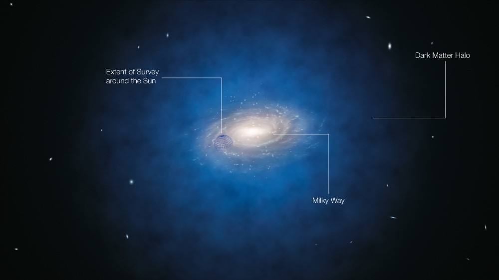 在這個調查中,以智利天文學者Christian Moni Bidin為首的團隊用ESO 的La Silla 2.2米及其他3座望遠鏡,在以太陽系為中心延伸的周圍區域進行了測量。雖然無法直接測量這塊區域本身的質量,但藉由這塊區域對經過恆星在速度上所產生的影響,其全部質量總數仍推估可得。