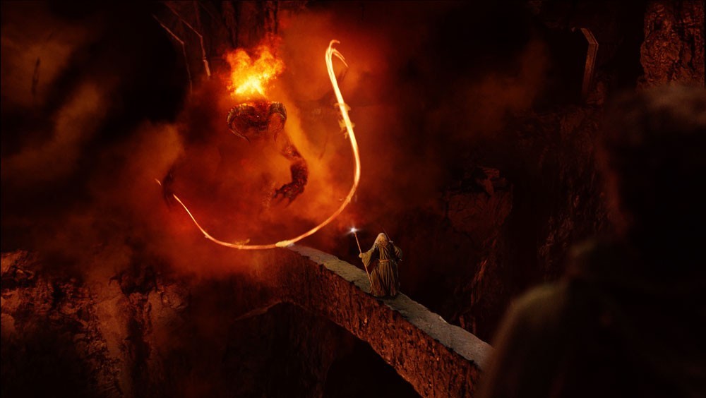 在世界級奇幻名著《魔戒》改編的電影《魔戒首部曲:魔戒現身》之中,反派角色「炎魔」和全書靈魂角色「甘道夫 」在摩瑞亞礦山中的武打場面非常精彩,並因此常常為魔戒粉絲們津津樂道。