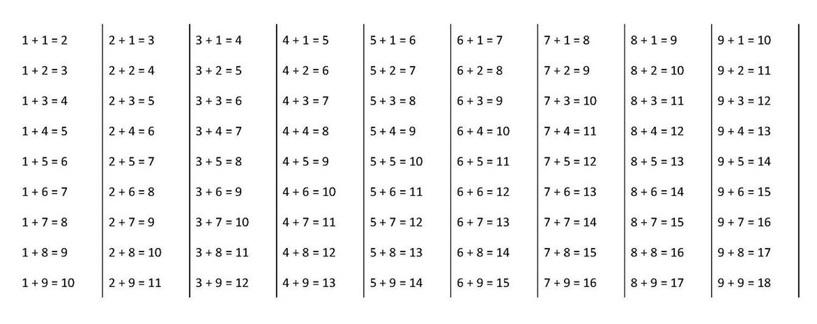 九九加法表