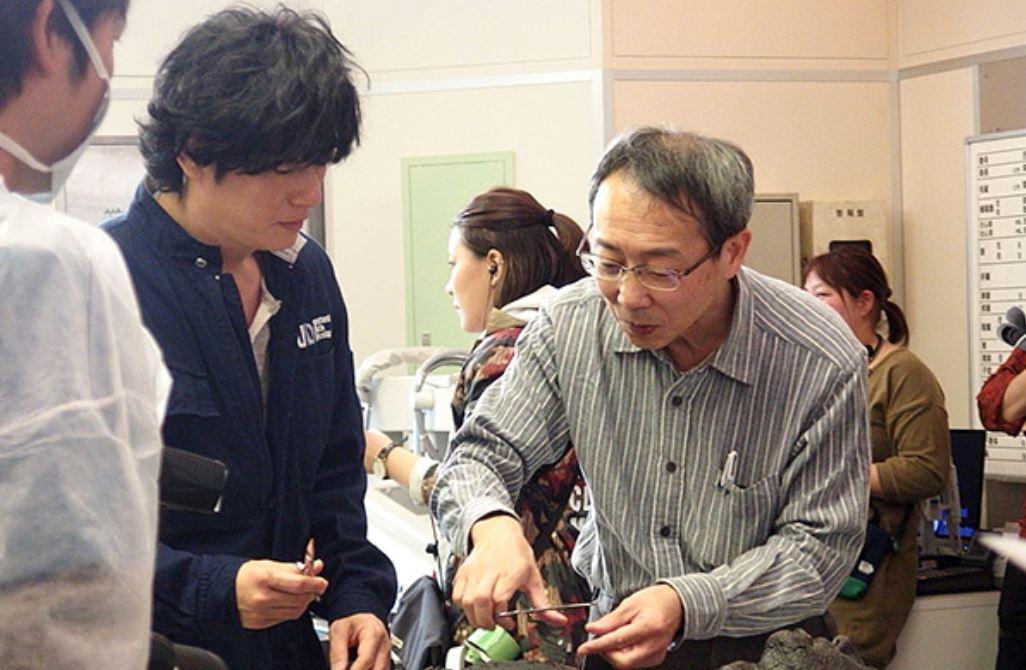 (上村教授向演員井浦新示範解剖器械的使用方式)