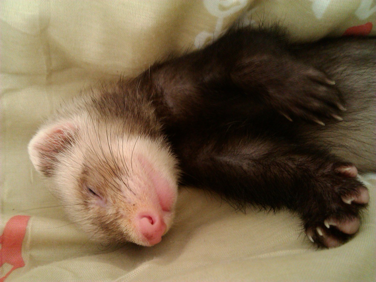 接下來兩天,牠就這樣待在那裡,沒怎麼動,鼾聲平穩。有貓咪病患進出時,開關籠門的聲響偶爾會將牠稍微吵醒。飼主來看牠時,牠也會稍微醒過來,試圖辨認來者何人。牠似乎很滿足、很放鬆地做著迷幻的貂之夢。