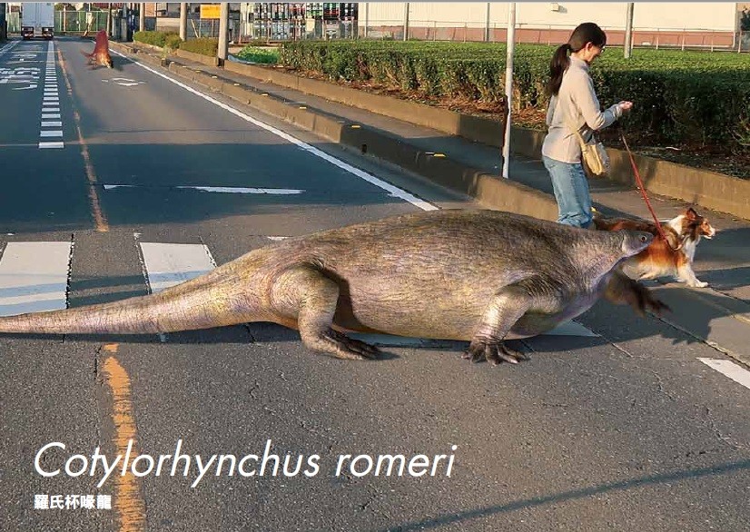最近遛狗時也會一起遛羅氏杯喙龍 (Cotylorhynchus romeri)。這種體長超過 3.5m 的龐然大物,走起路來慢吞吞的,所以不需要牽繩。小狗似乎也習以為常,能在絲毫不驚嚇的狀況下一起散步。這樣看起來,杯喙龍好像滿好飼養的,本來以為這種大小要養在室內很麻煩呢!