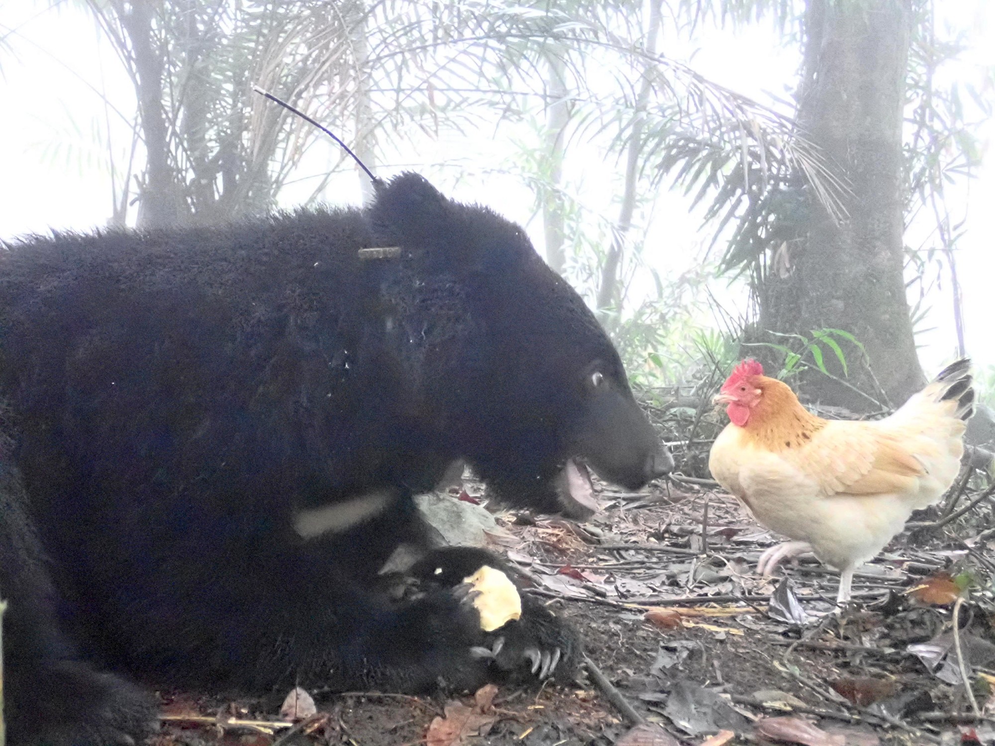 話說回來,安置小熊之初,團隊本也想到為孤單的小熊找伴,如狗或其他熊,但因各種考量而作罷。如今冒出一隻地表最強的「奇雞」,五個月以來一直陪著小熊,算是山神送給小熊的禮物嗎?小熊和「熊麻雞」的關係,究竟是跨物種的友誼,還是養雞取蛋,或是養肥殺來吃的儲備糧食的概念,沒有人知道。但身為唯一逃過「熊口」的雞,肯定對於小熊來說有特別的意義,也讓我們對於台灣黑熊的研究有了一項有趣而溫馨的紀錄。不知可否登上金氏世界紀錄。