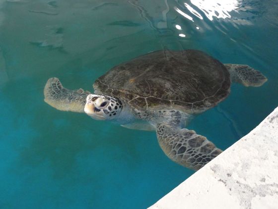 圖五被人類從小圈養的宅男龜悠閒地生活人工環境中 560