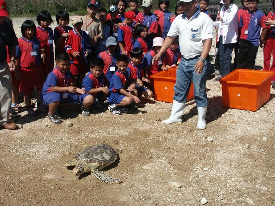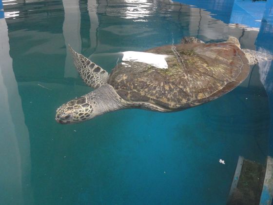 收容意外受傷的野生動物給予適當治療照顧,待其康復之後再予以野放,也是水族館無可推諉的保育工作項目之一,如擱淺受傷的鯨豚、非法走私的魚蝦貝類或是被漁網漁具割傷的海龜等等,這些都是水族館收容的對象;受傷的個體經過細心治療痊癒之後,隨即野放回大自然,畢竟大自然仍是野生動物最好的家。然當有些個體因為部份肢體傷重過度而慘遭截肢,已經喪失野外求生的基本能力,此時只能待在水族館內頤養天年了。例如館內就有一隻綠蠵龜;它就是因誤闖漁網而重傷,不得以將其前鰭截肢以保全其生命而成了「獨臂龜」。另外有一隻綠蠵龜則是自小就被人收養的標準「宅男龜」,從未出過水族館的大門,也沒有見過汪洋”大海”,只認得飼育人員,根本無法瞭解美麗大海中所隱藏的險惡,若貿然將其進行野外放生,反而是送羊入虎口的殘忍作法;因此當原飼養水族館吹熄燈號時,館方人員便商請本館加以收容照顧,以免變成無家可歸的流浪龜。雖然宅男龜體型碩大,卻個性溫和不怕生,喜愛與人接近,中心開放參觀後,一夕成名,目前是館方水族中心的最佳男主角,成為遊客後場參觀最吸晴的明星。牠將常住本館成為綠蠵龜的代言人,為自然界的親朋好友們站台發聲,善盡一份保育職責,直到終老為止。