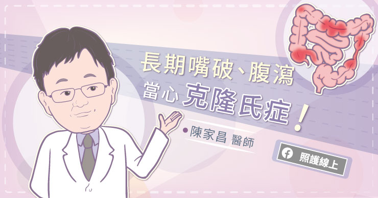 陳家昌醫師指出,克隆氏症常見症狀為腹痛、腹瀉,這些症狀一般人或多或少會遇到,然而克隆氏症或潰瘍性結腸炎屬不易好轉的慢性疾病,如果症狀反覆發生、持續超過 3 ~ 6 個月都未好轉,就要警覺,應盡快至醫院檢查。