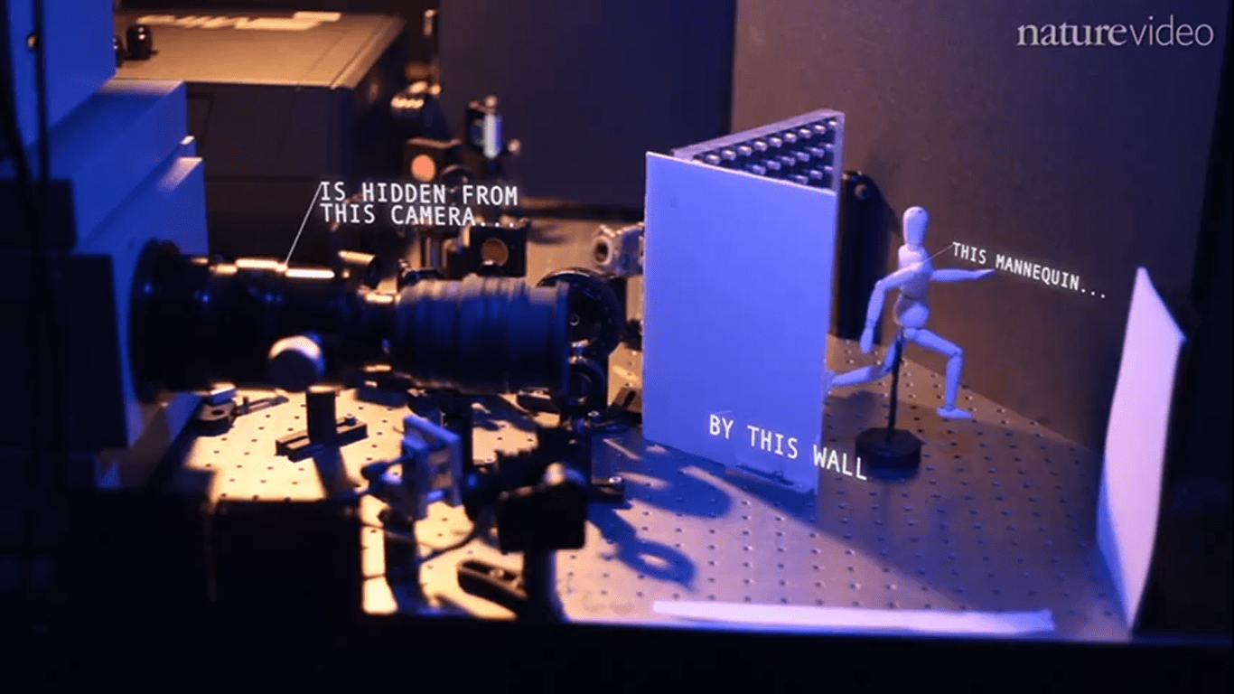 聰明的科學家發展了一個新的技術,不用物體發出來的光來聚焦成像,而是計算如果在特定時間丟出一堆光子,分析這些光子在哪些時間被反彈回來,用這樣的方式來「看」空間中的物體。因為光子可以散射,所以表現上像是打了很多超音波脈衝,即使物體不在光直徑的的路線上,經由光線的散射,空間中的區域都可以被偵測,然後只要在各個不同的方向放出脈衝,計算所有脈衝回來的時間分布就可以反推空間中有什麼樣的東西。