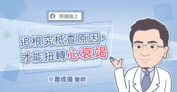 「目前治療心臟衰竭,需以全人照護的態度幫病患控制症狀,不是只有看心臟,而是先找出原因。」蕭成儀醫師道:「要了解患者的根本問題是出在血管阻塞、代謝疾病、糖尿病、高血壓、或免疫疾病。找到並解決根本問題,才能夠脫離心臟衰竭。」同時要更進一步搭配復健訓練,提升病患整體功能,恢復運動量,避免讓心臟衰竭落入惡性循環。