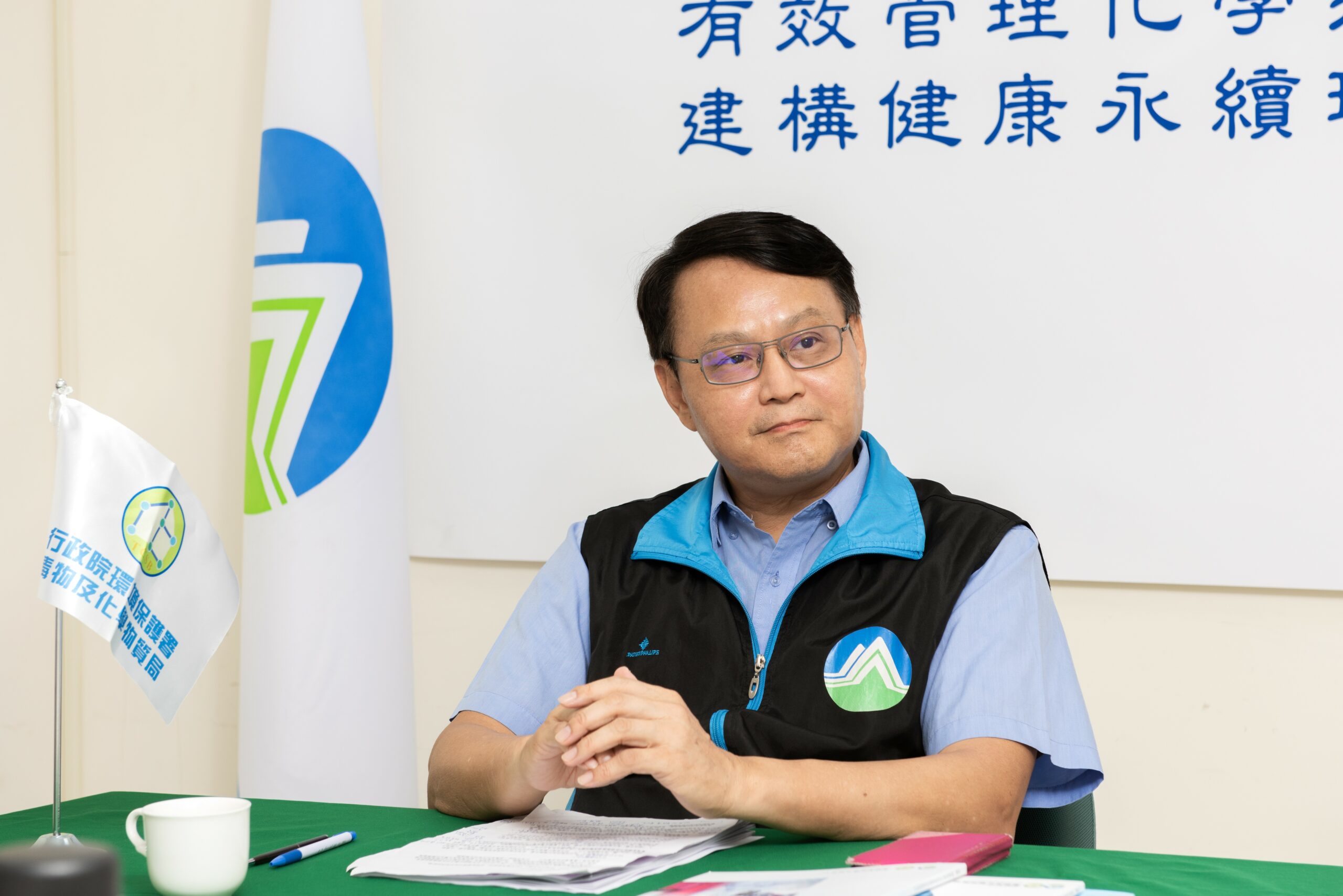 高大的謝燕儒局長熱情地跟我們打招呼,他皮膚曬得黝黑,短袖藍色襯衫外配有著環保署標誌的背心。我自我介紹完,開門見山就提問:大家那麼討厭化學,化學局該怎麼辦?