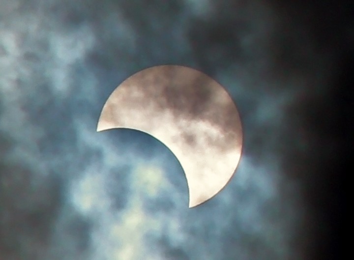 2019年12月26日臺北所見的日偏食(攝影/歐柏昇)