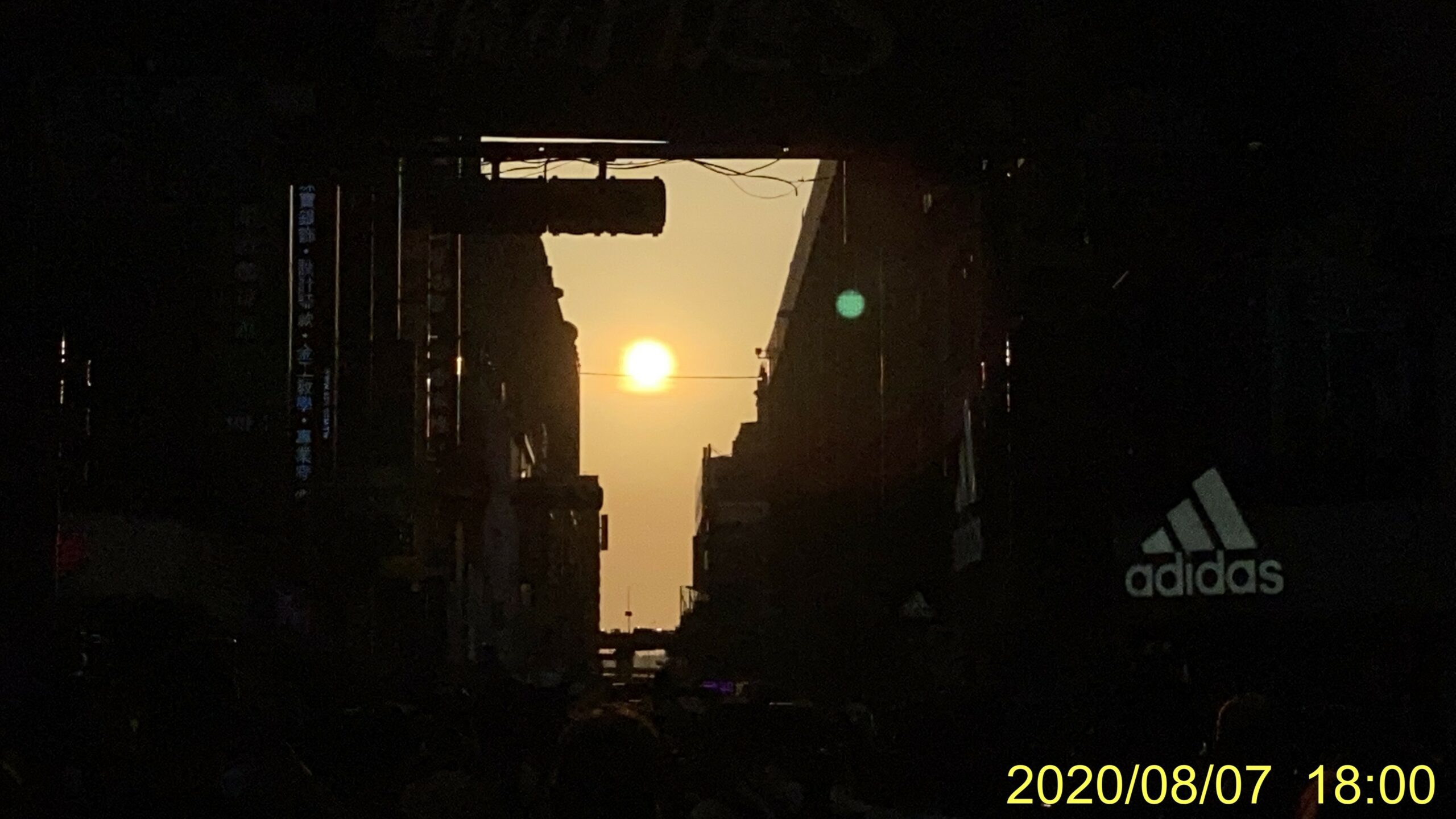 每隔一段時間,你可能會看到有人聚集在西門的峨嵋街或是忠孝東西路上,架起一台台相機對著大樓之間的那片天空拍照。直到日暮時分,太陽進入大樓之間,宛如懸掛在街道的盡頭,浪漫美景誘導人們按下相機的快門。這就是現代美景「懸日」。