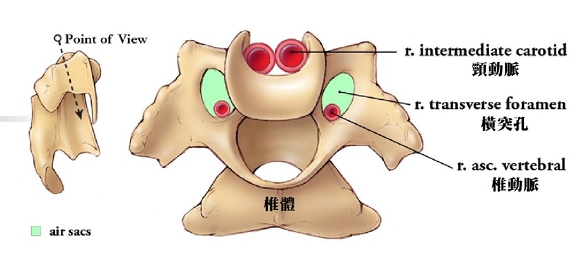 上方是前方,橫突孔相當寬敞,椎動脈好自由阿