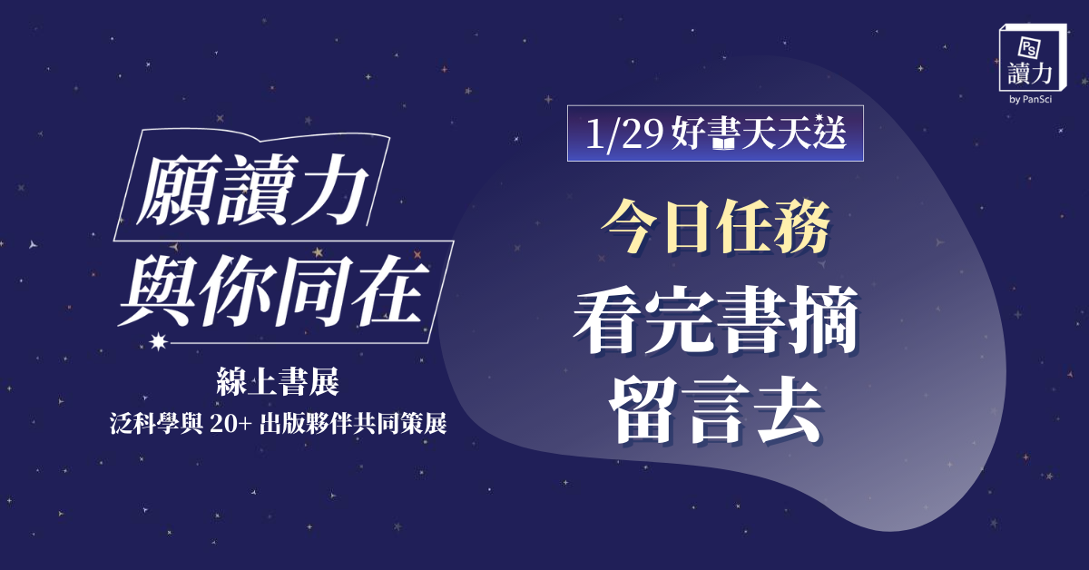 只要在 1/30 凌晨 4:00 前在這篇文章下方,貼上你有留言的那篇書摘文章的連結,就能獲得今天的抽獎資格啦!
