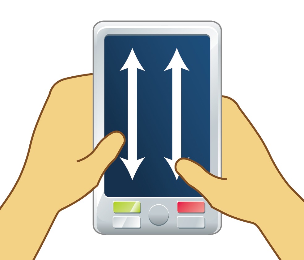 圖1 使用左右手拇指在螢幕上滑動。