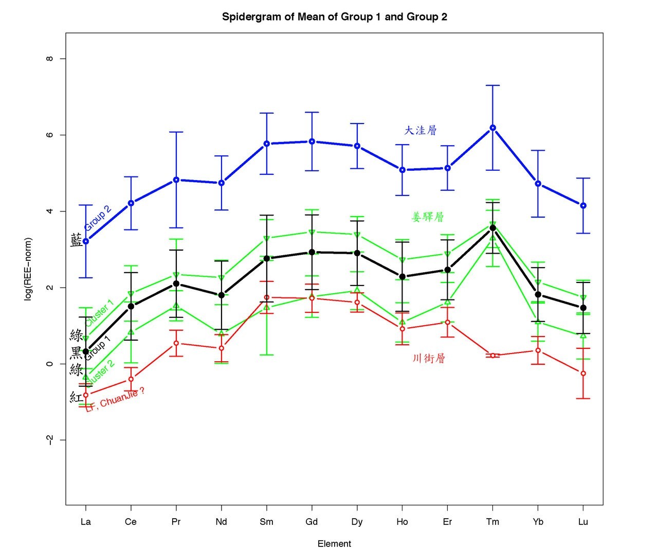 前幾年跑了雲南很多地方的恐龍點,採集了很多個恐龍點的樣本,回來後透過老妹的幫忙,利用感應耦合電漿儀(ICP)做化學元素分析,畫出這些恐龍化石內的稀土元素含量蜘蛛線(Spidergram),推論這些恐龍的相對地層,詳見:2008/4/11 〈三圖顯真相〉;這篇文章的學術版,去(2010)年終於被中華民國地質學會接受,將刊登於2009年該學會的〈地質〉期刊上【按:目前只出版到2008年度的,2009年度的還在等待中。】