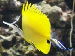 清潔魚正在清理長吻蝶魚身上的髒東西