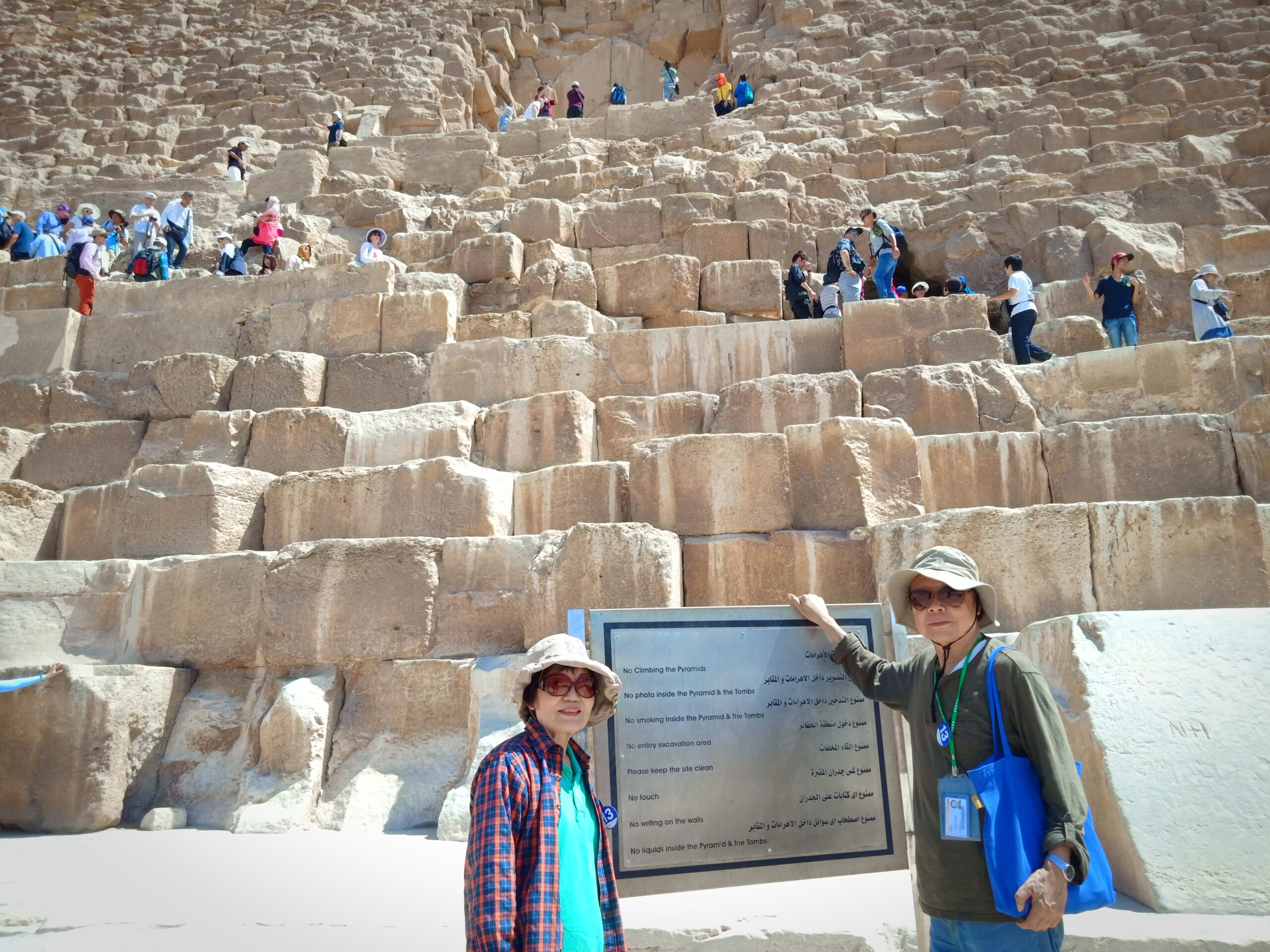 五月十六日,和平號抵達賽得港。翌日我們搭遊覽車前往開羅,上午參觀埃及博物館,午餐在貫穿開羅市區的尼羅河河畔的船上餐廳用餐,然後到一家莎草紙畫店待了約半小時,接著前往參觀吉薩金字塔群。吉薩是開羅的一塊高地,海跋約六十公尺,是片小沙漠。