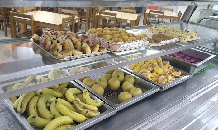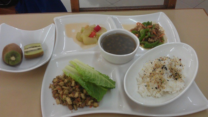 飲食供應可為一般區、低脂區以及量身訂作餐。中心的供餐確保有低鹽、低脂與低糖的食物以供選擇,增加蒸與烤的烹調方式,減少油炸的烹調方式,除此之外,亦力求烹調方式多樣化,水果與蔬菜的種類多元,菜色多樣化,亦常有 pizza 、牛排等西式食物,水餃、煎餃、麵等中式食物以供選擇,飲料種類包括運動飲料、牛奶、各式果汁等。亦即食譜設計所含之主食、主菜、副菜、水果與湯應力求好吃並多元化。