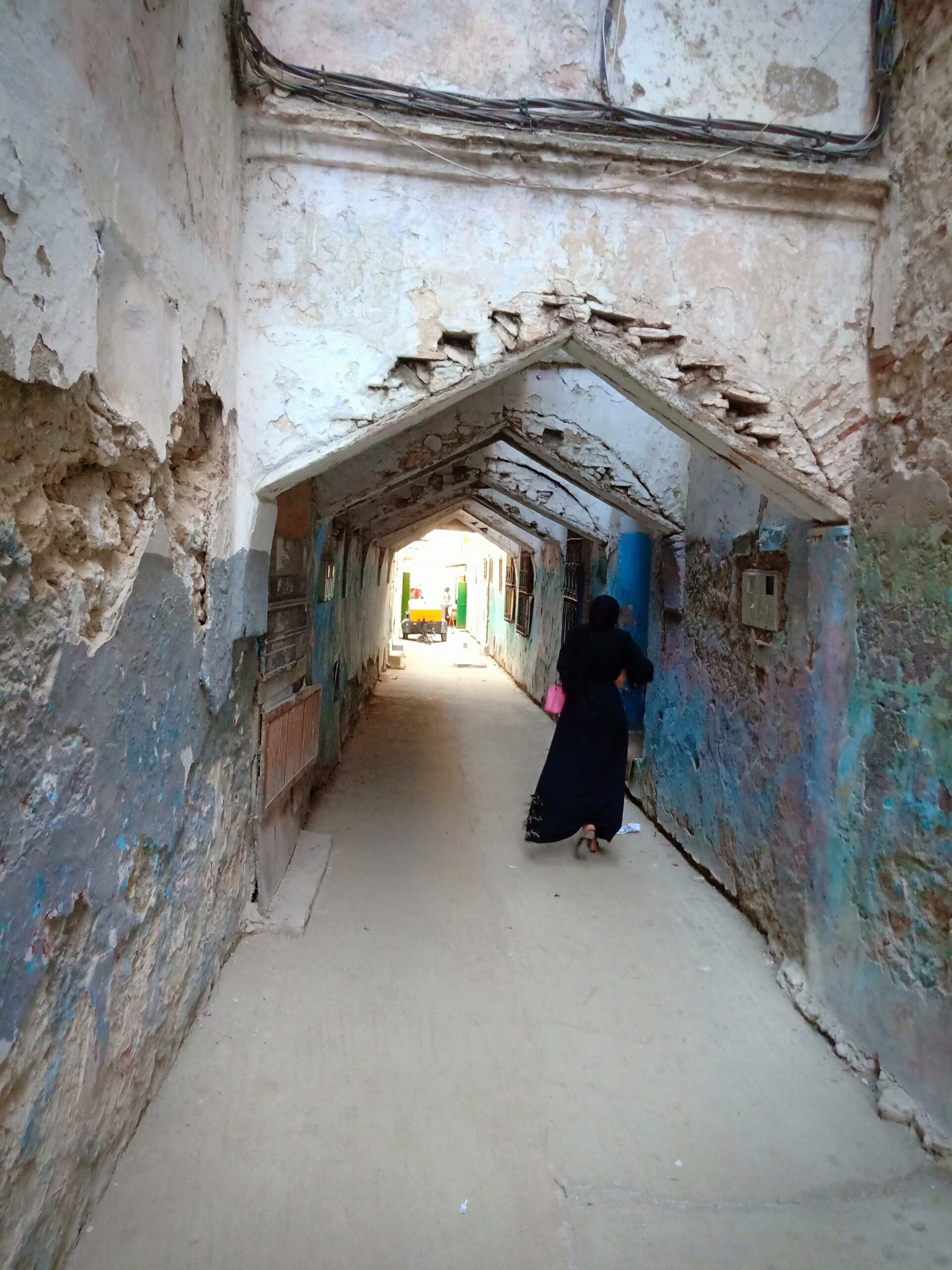 舊城區的巷弄大多很窄,最窄的大約只能容得下兩個人並肩而過。巷弄窄,意味著太陽曬不進來。沿街的房子都連載一起,沒見獨棟的。店鋪大多像窯洞,有個拱頂,除了門,其他三面沒有窗戶。厚實的牆壁,陽光曬不透。這或許是因應沙漠乾熱氣候,因地制宜所發展出的建築形式吧。