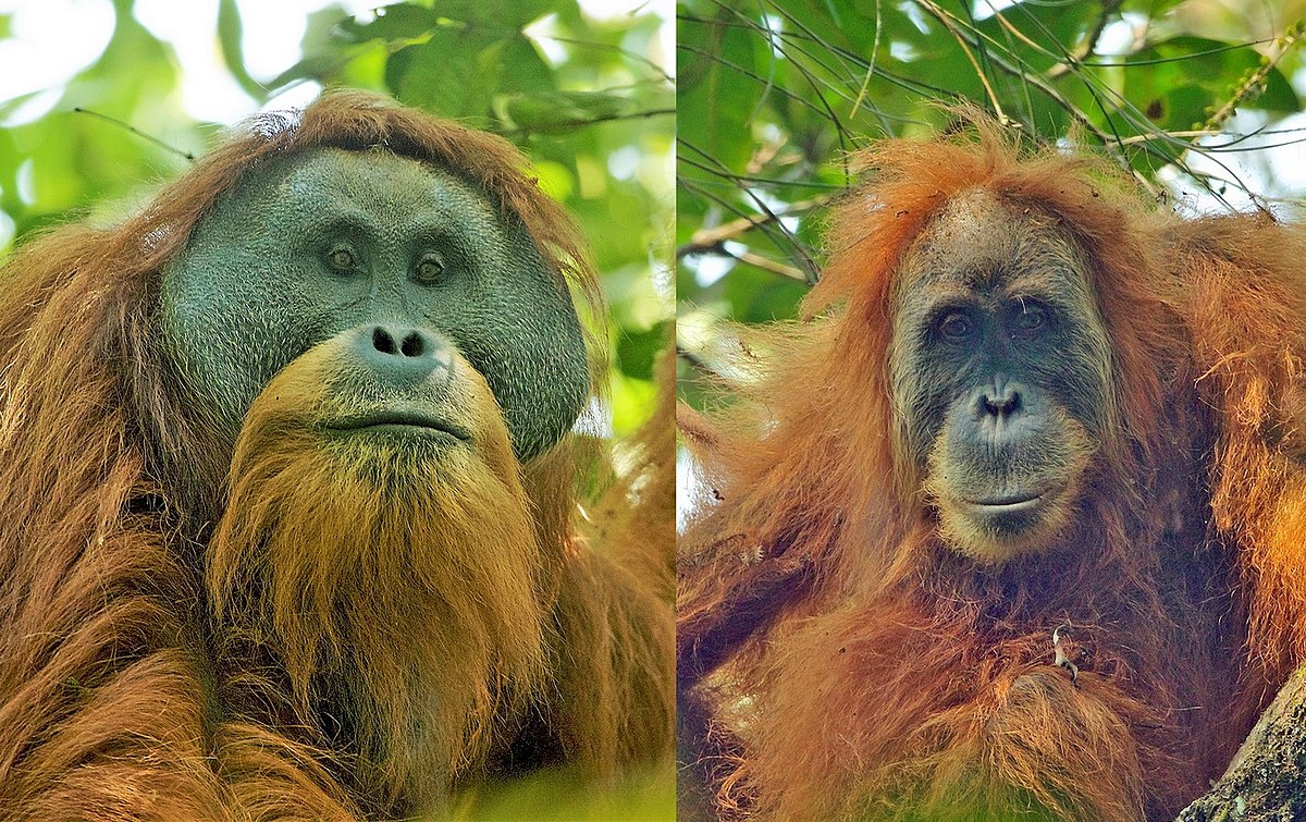 .Sumatran Orangutan.(Pongo abelii).Batang Toru Population ..Togus, adult flanged male ..Batang Toru Forest.Sumatran Orangutan Conservation Project.North Sumatran Province .Indonesia..
