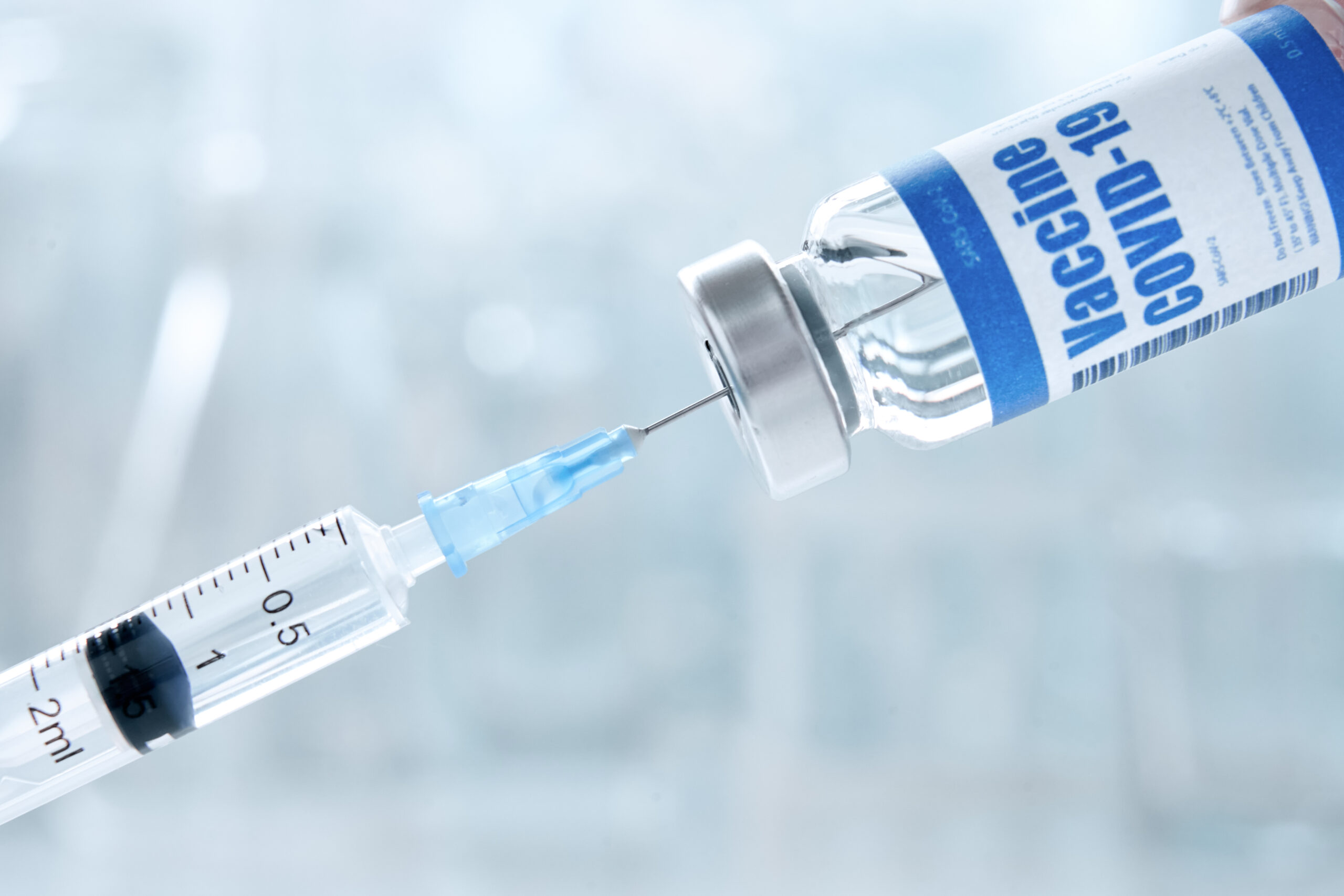 Syringe taking covid 19 corona virus liquid vaccine from vial bottle testing and preparing for intramuscular injection. Coronavirus immunization flu treatment and vaccination concept, close up view.