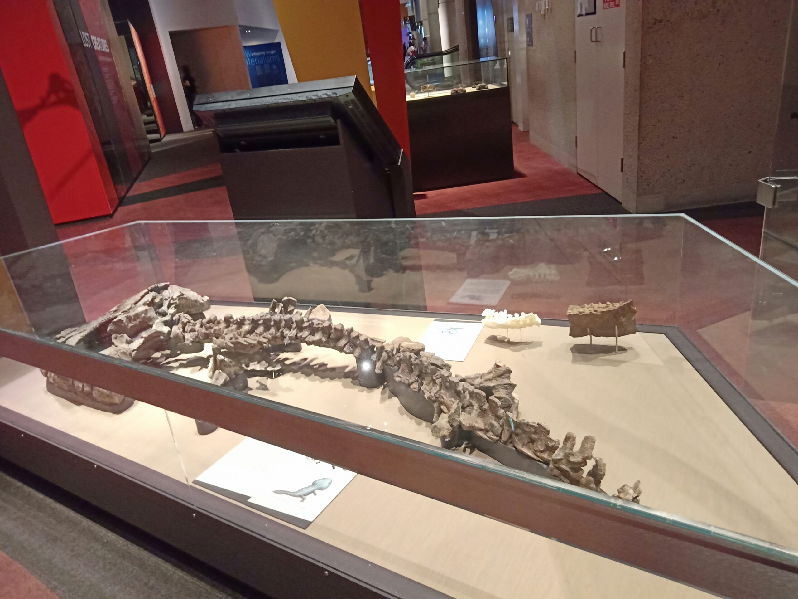 艾西斯福德鱷(Isisfordia),真鱷類的一屬,現生鱷魚的近親。生活於澳洲白堊紀,一九九○年代中期出土。盾龍(Kunbarrasaurus),生活於澳洲白堊紀的的小型食草性甲龍類,一九九○年出土,二○一五年命名。還有幾種因說明牌沒拍攝清楚,也沒作筆記,無法查取。可以確定的是,展出的均為模式標本,也就是用來命名的標本,彌足珍貴。