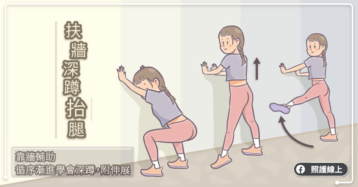 扶牆深蹲抬腿
