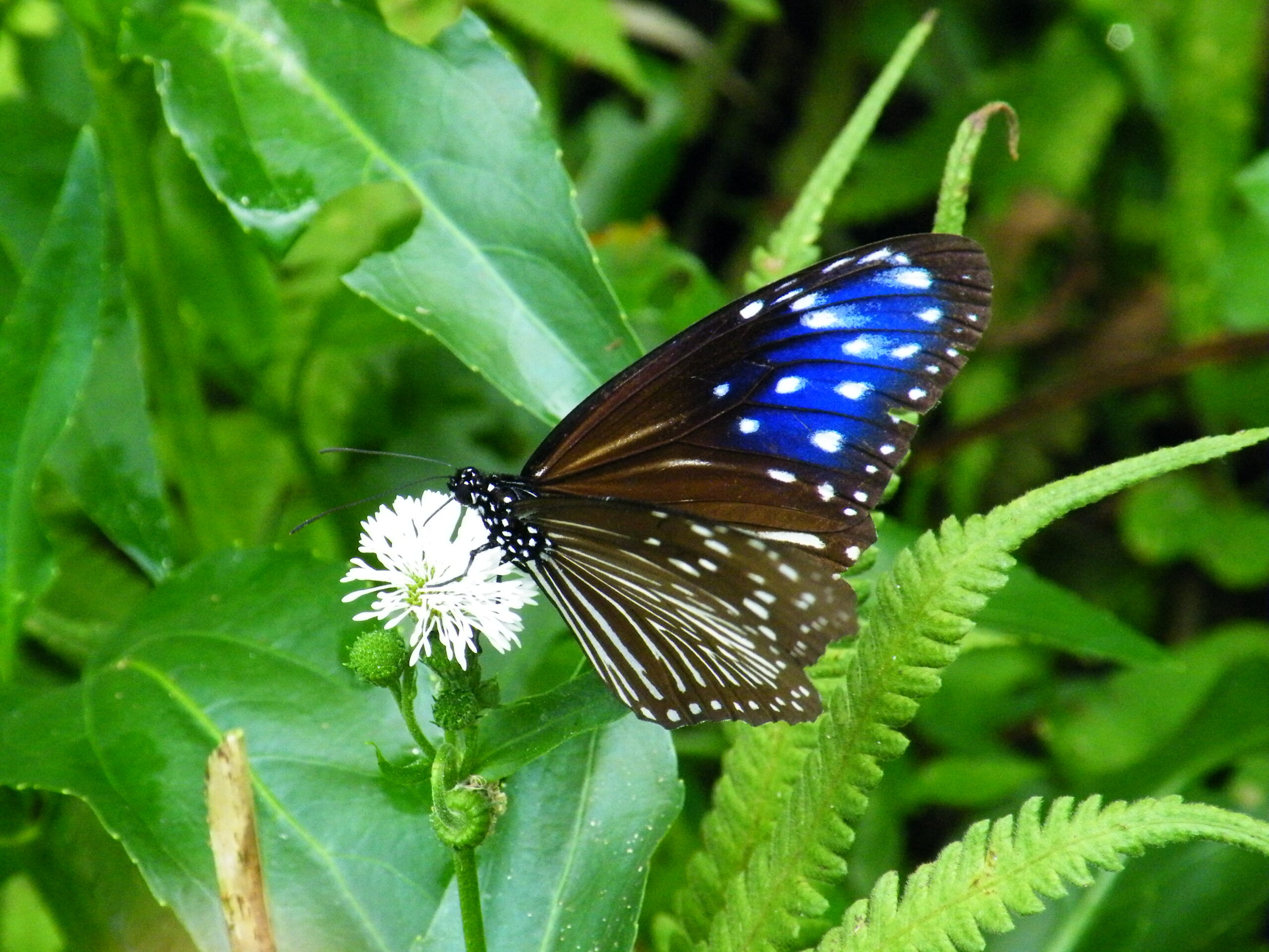 在台灣的我們,除了博物館裡才有機會目睹的閃蝶,有沒有什麼活生生的例子可以讓我們一窺構造色呢?常見的「紫斑蝶」(Euploea),就是很好的觀察對象。牠們不只是數量多,同時又是蝴蝶中動作較為緩慢的種類,因此要近距離接觸牠們並不難。