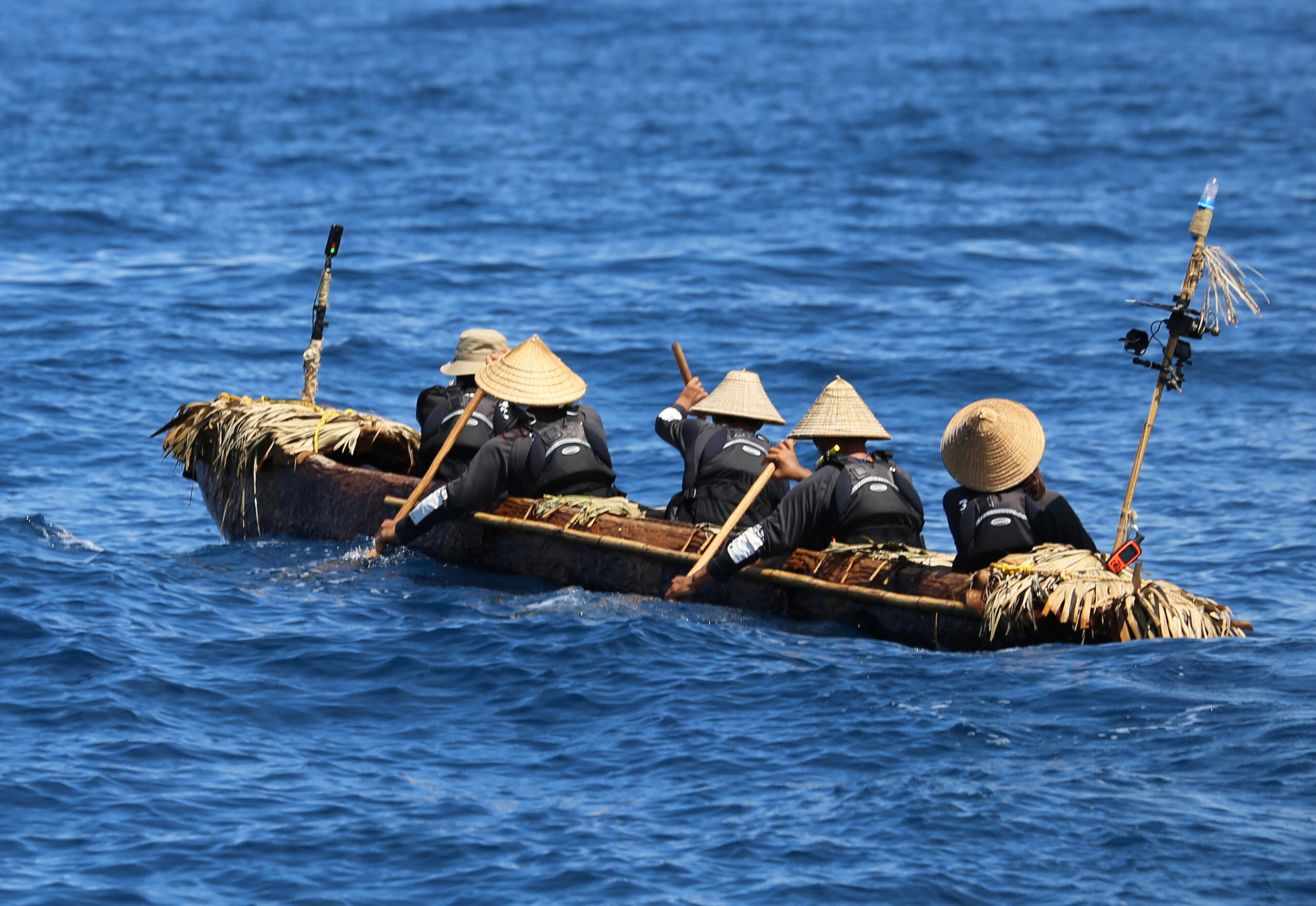 黑潮的流向雖然也算是由南向北,卻不會把人從臺灣帶到琉球群島,只會繼續北漂。倘若不穿越黑潮,就無法登陸琉球。這也是計畫叫作「跨越黑潮——復現 3 萬年前的航海」的原因。