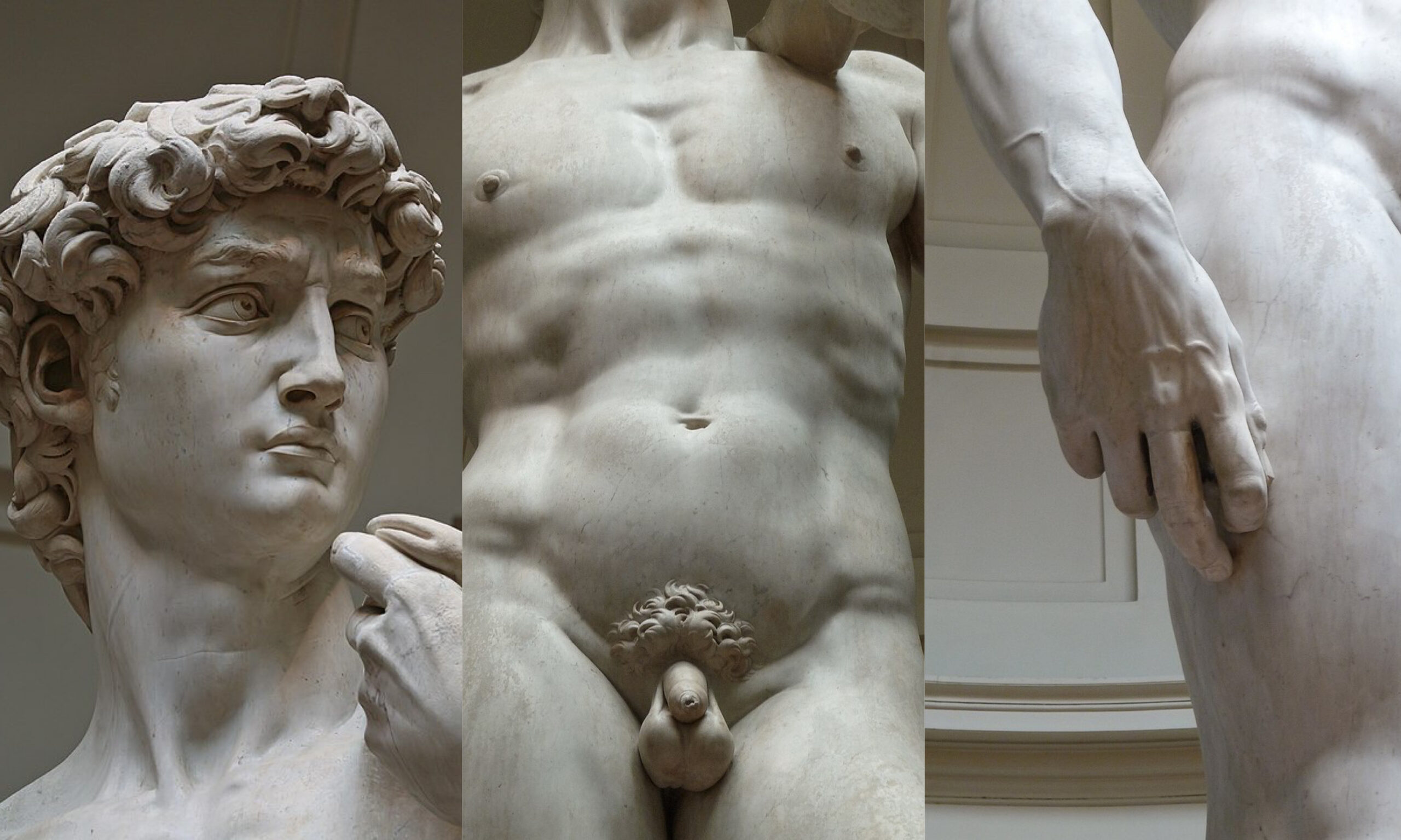 所以雕像的睪丸,位置和真實世界相同——通常是「左高右低」。或更精準的說:「和慣用手同側的睪丸,位置比較高」。